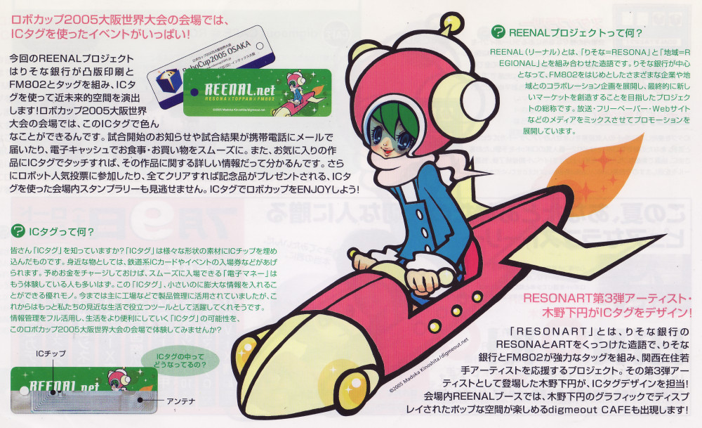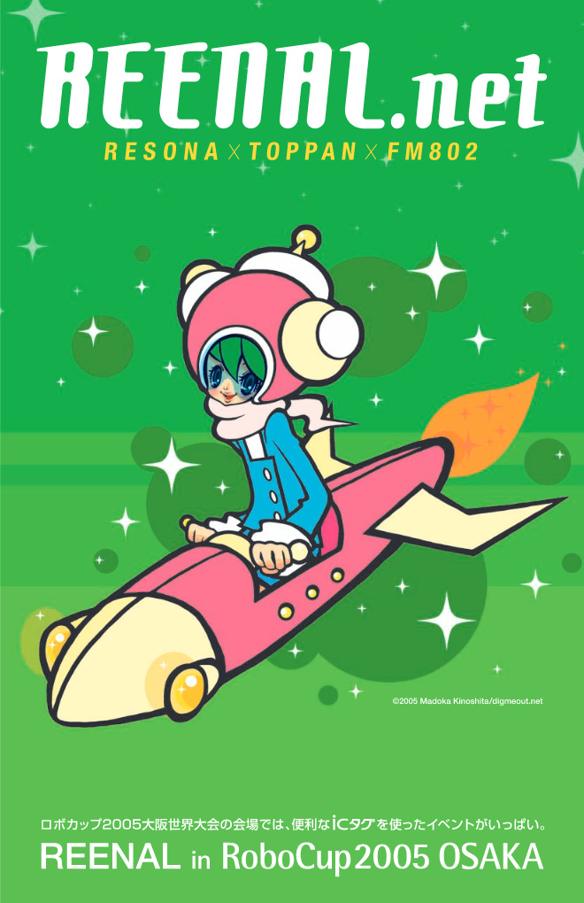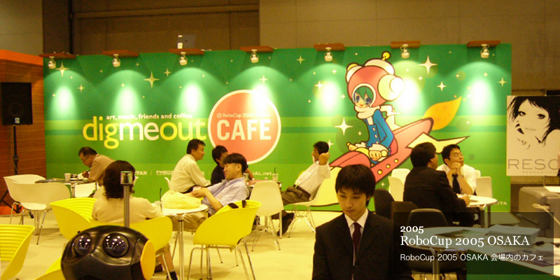 インテックス大阪で開催されるロボットのワールドカップ、RoboCup 2005の特設CAFEと会場で使用できるストラップ型ICタグのデザインをしました。