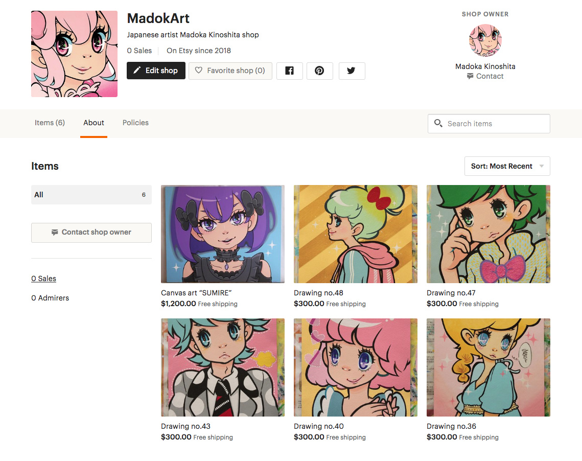 海外にも通販して欲しいとの要望があったので、アメリカ(?)のハンドメイド通販サイトEtsy(エッツィ)にSHOPをオープンしました。英語での登録だったのですがサイトは日本語にも翻訳して表示してくれるのでどちらの方にも使いやすい場所かなと思い登録してみました。